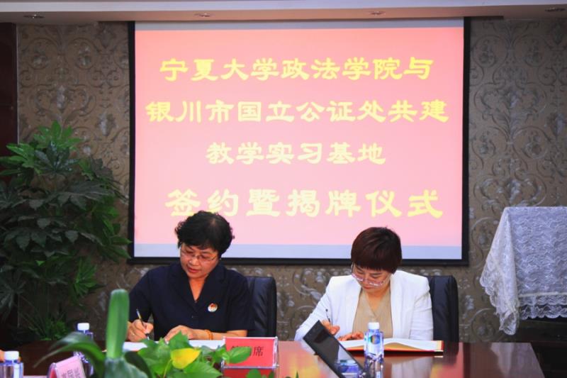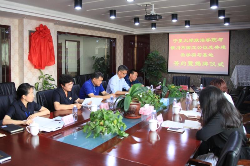 与银川市国立公证处共建教学实习基地签约暨揭牌仪式在银川市国立公证处举行。自治区司法厅律师公证处鹿守岩调研员、银川市司法局李卒副局长、银川市国立公证处于洧主任、银川市司法局公证律师管理科高国兴科长、政漫画18