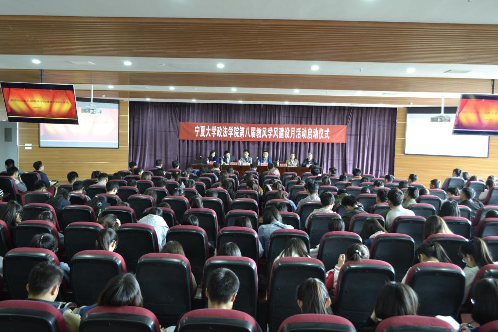 为切实加强教风、学风建设,营造优良的教学科研环境和严谨、好学的学习氛围,政法学院于4月12日下午在贺兰山校区文科楼模拟法庭召开“第八届教风学风建设月”系列活动启动仪式。学院全体领导班子成员、三系三办主任及部分教师代表出席了大会,2016级全体学生及2014、2015级学生干部参加了大会。启动仪式由学院党委副书记崔明堂主持。