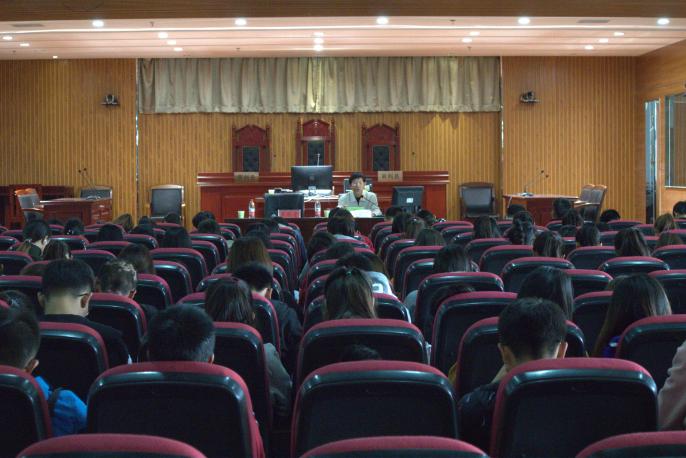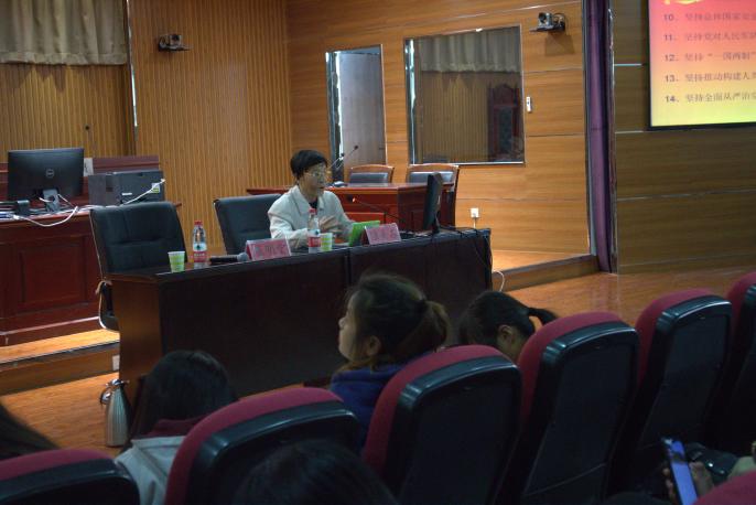 关工委五老报告团成员陆美石老师,于贺兰山校区文荟楼模拟法庭,为同学们深刻解读了习近平新时代中国特色社会主义思想。讲座由政漫画18