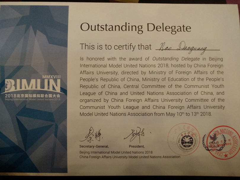 北京国际模拟联合国大会作为中国首屈一指的模拟联合国活动,每年都受到外交部、教育部、共青团中央、中国联合国协会和联合国驻华系统等部门和领导的大力支持。大会为学生提供了一个独特的平台,让学生们能够加深对国际关系的认识和对联合国运作模式的了解。每年由外交学院主办的北京国际模拟联合国大会,代表着中国模拟联合国顶级的学术水平,是全国模联活动的一面旗帜。