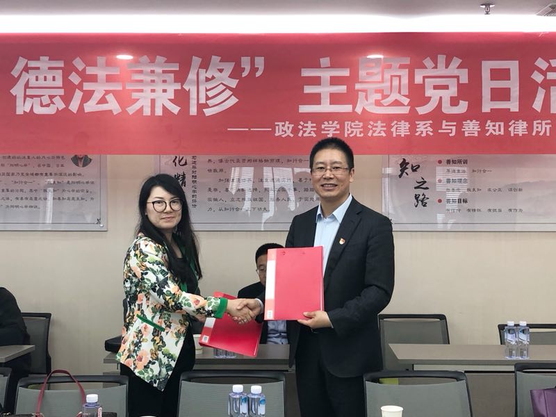 法律系教工党支部与宁夏善知律师事务所党支部共同举行了“立德树人,德法兼修”主题党日活动。法律系教工支部党员集体参观了善知律师事务所,与律所党支部签订了党建共建协议。院党委书记潘瑞参加了此项活动。