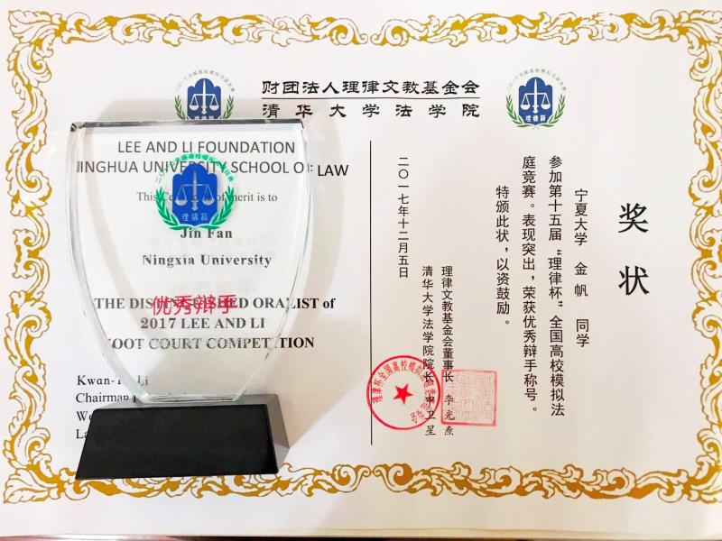 连续第四年受邀参赛。2015级法学一班的金帆同学获得优秀辩手奖。
