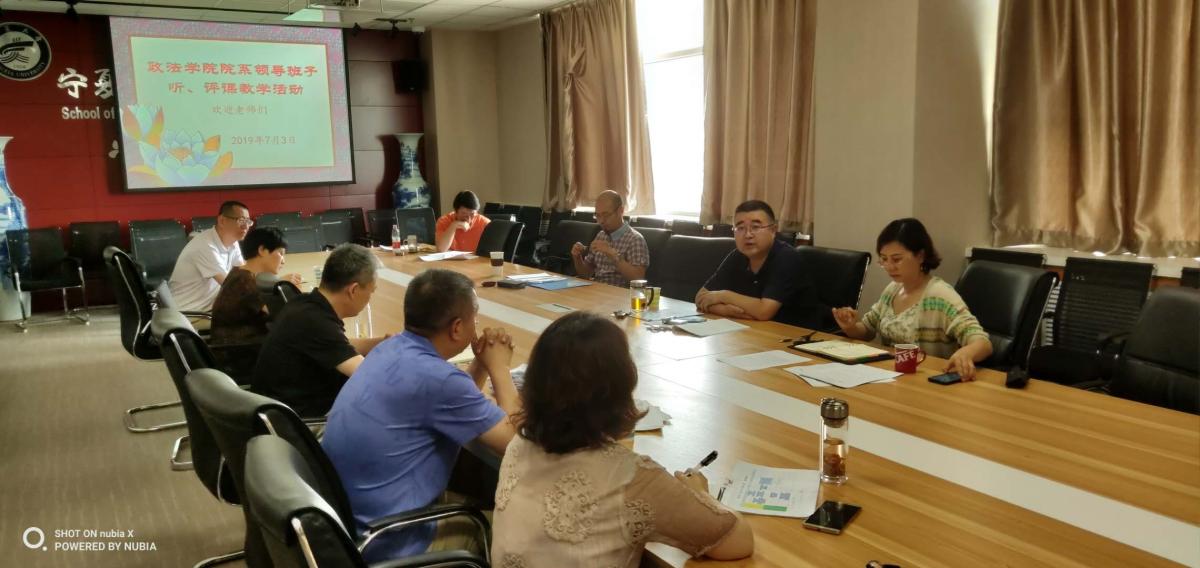 2018-2019学年第二学期院系领导评课、议课教学会议在学院会议室举行,学院班子成员、三系主任、教办主任参加。