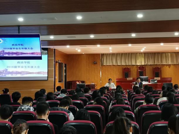 10月14日中午,政漫画18 召开2016级毕业生大会,学院党委副书记崔明堂出席大会并讲话,2016级全体毕业生参加。大会由辅导员丁颖主持。