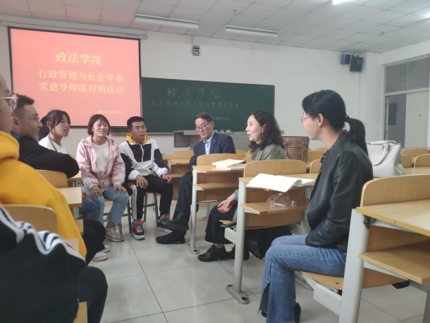 10月9日,行政与行政管理和社会学系教工党支部和行政管理和社会学系学生党支部联合开展党建导师与学生面对面活动,教工党支部李德宽、曲正、潘瑞、崔明堂、冯杰文、王雪梅、狄良川、江晓红、李俊群、崔朝阳、张丽艳、贾陈亮等24名教师党员分别在文荟楼103、105、801三个活动地点就如何充实大学生活、快速适应大学学习、正确面对新环境带来的困惑等问题进行指导交流,学生党支部的14名学生党员和2019级的46名新生参加。