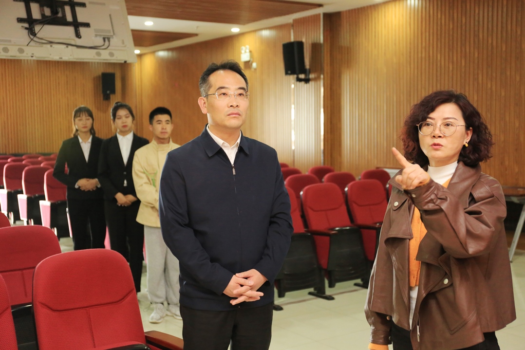 学生会办公室、学院学生工作办公室实地查看,院长助理张弛就模拟法庭的建设使用情况及法学学科实践教学情况做了详细介绍。