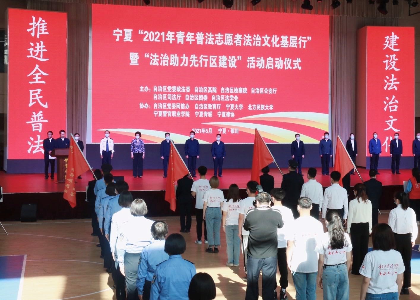 雷东生寄语广大青年普法志愿者:希望青年普法志愿者肩负历史使命、坚定前行信念,紧紧围绕“助力先行区、争做先行者”,积极开展“一十百千万”活动,发挥好青年普法志愿者这一生力军作用,组织十个行业主管部门深入参与法治文化基层行活动,组建一百支青年普法志愿者小分队,开展一千次普法宣传活动,送法进一万个家庭,不断增强广大人民群众法治观念。在波澜壮阔的历史画卷中书写全面依法治区的青春华章,让青春在全面依法治区的广阔天地中绽放,让人生在法治宁夏建设中焕发绚丽光彩。