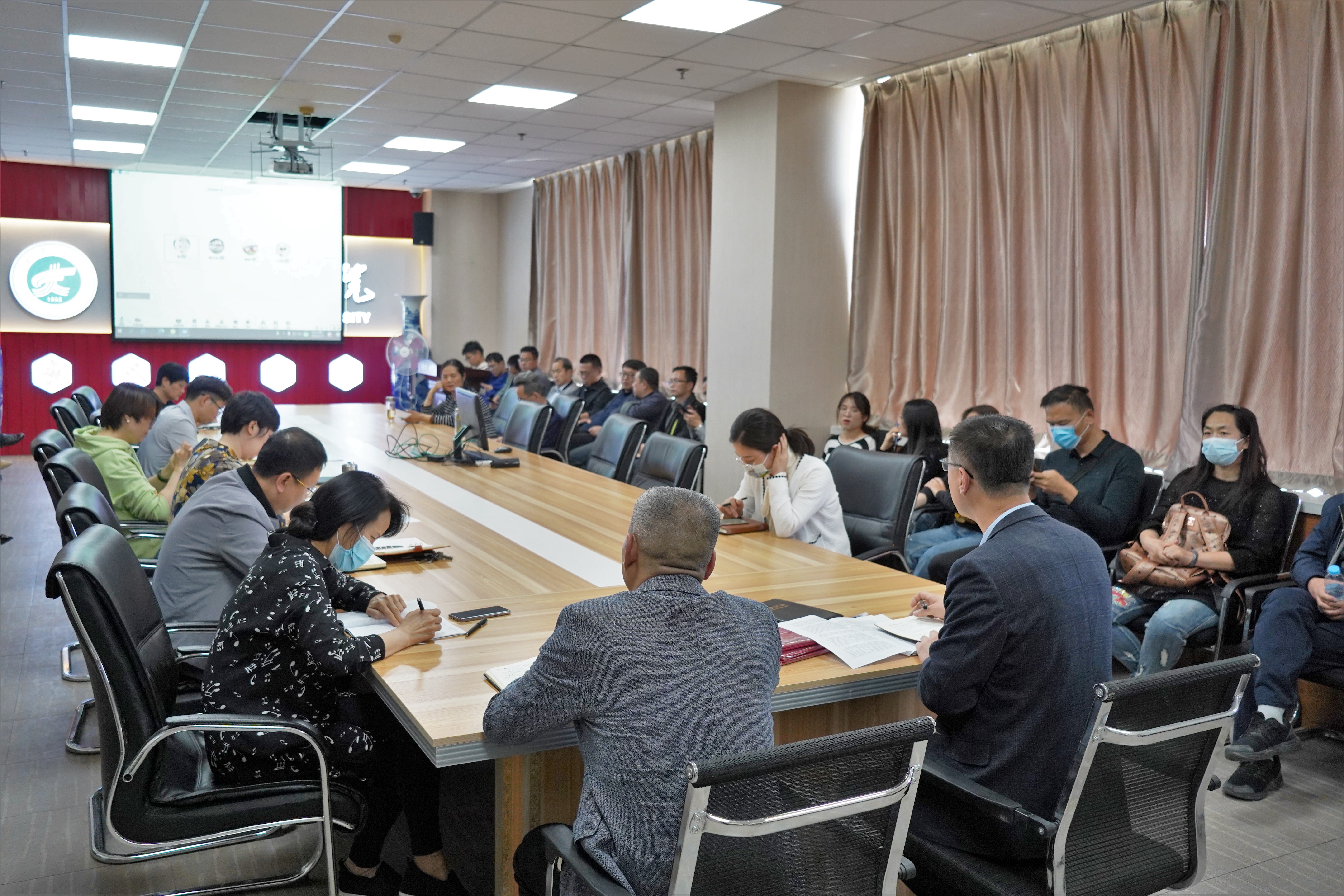 在文荟楼801会议室召开教职工大会,采用线上线下结合方式进行期中教学集体观摩。大会上刘芳、张琴和王俊丽分别作课程汇报。