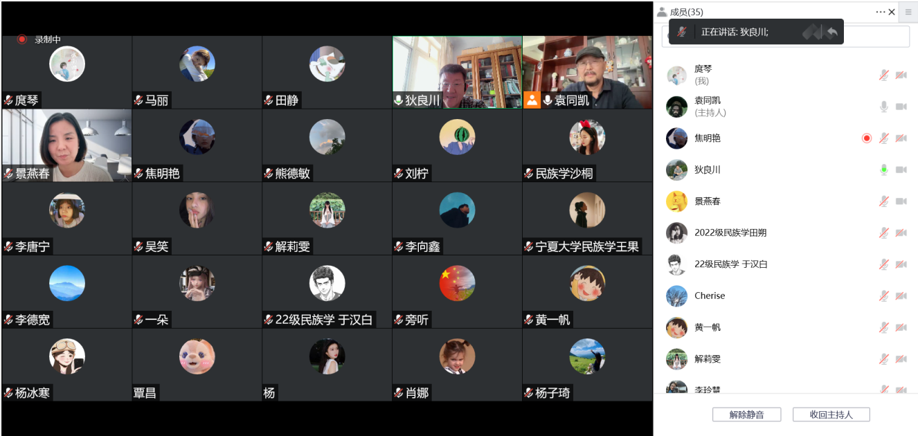 副教授狄良川主持,部分民族学点导师、2021级、2022级民族学博士和硕士研究生参加。