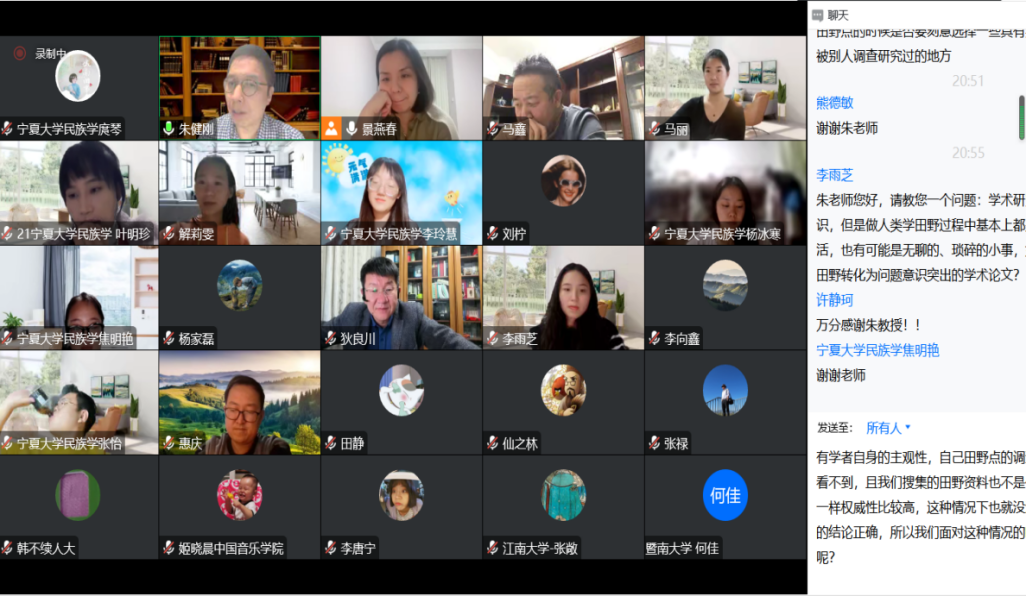民族学研究生学术论坛系列讲座在线上持续展开。本期讲座特邀了南开大学周恩来政府管理学院教授、博士生导师朱健刚,讲座主题为“从社区到社会:对田野调查的反思”。讲座由景燕春博士主持,狄良川副教授为与谈人,民族学专业师生与校外师生共计二百七十余人参加。