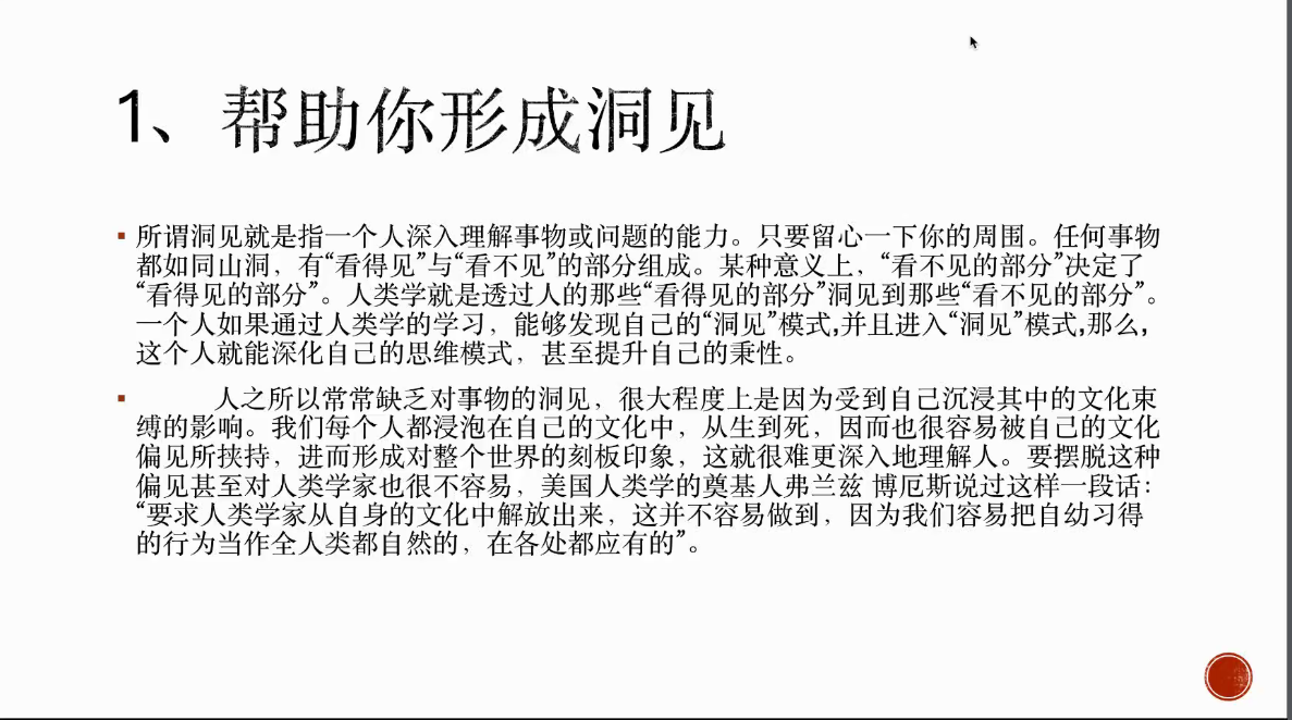此次讲座采取对话的方式展开,形式新颖,内容共分为五个部分。朱教授首先以“什么是人类学?人类学家都在做什么”引导,随后向同学们讲述了什么是田野调查、为什么要做田野调查以及如何做田野调查、田野调查在我们生活中的应用等内容。