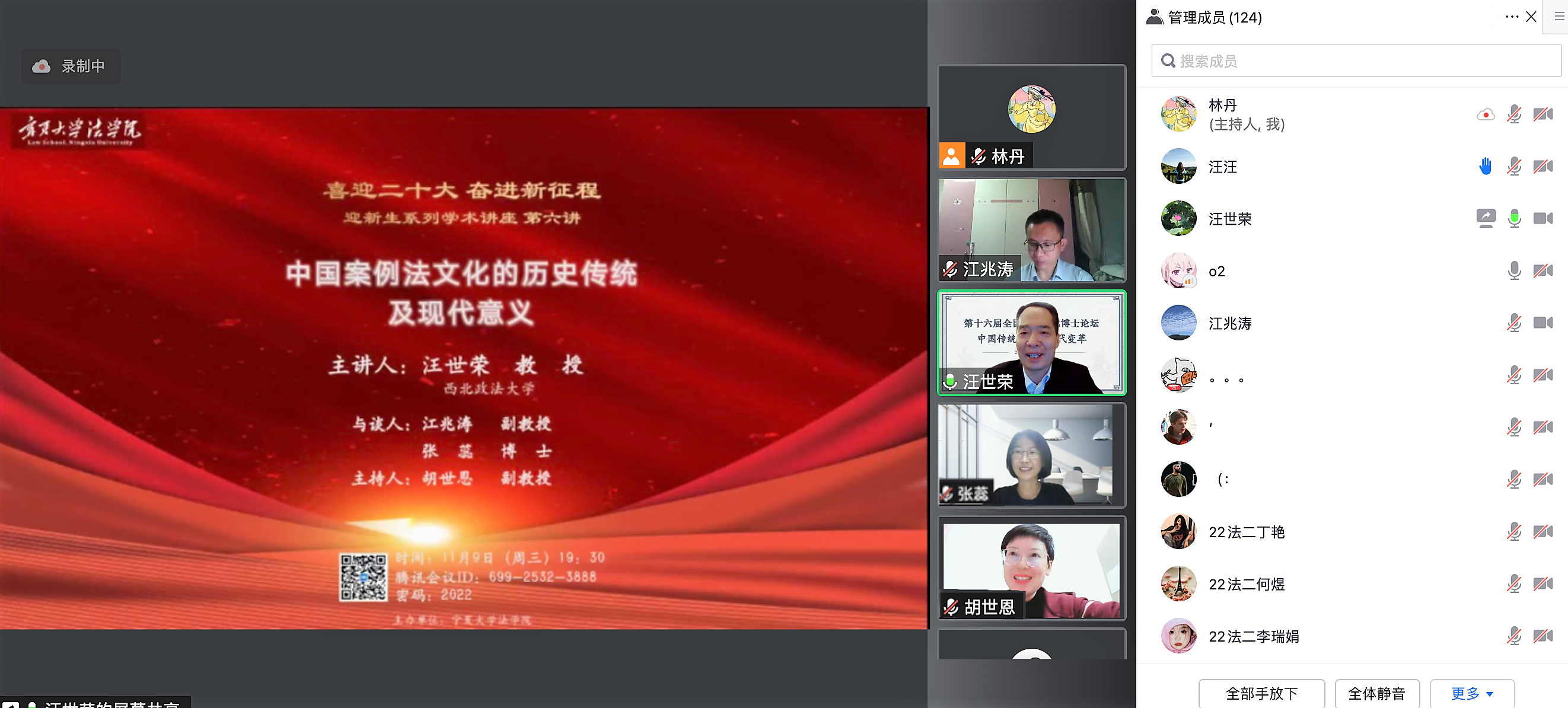 特邀西北政法大学汪世荣教授举办以“中国案例法文化的历史传统及现代意义”为题的线上讲座。本次讲座由漫画18