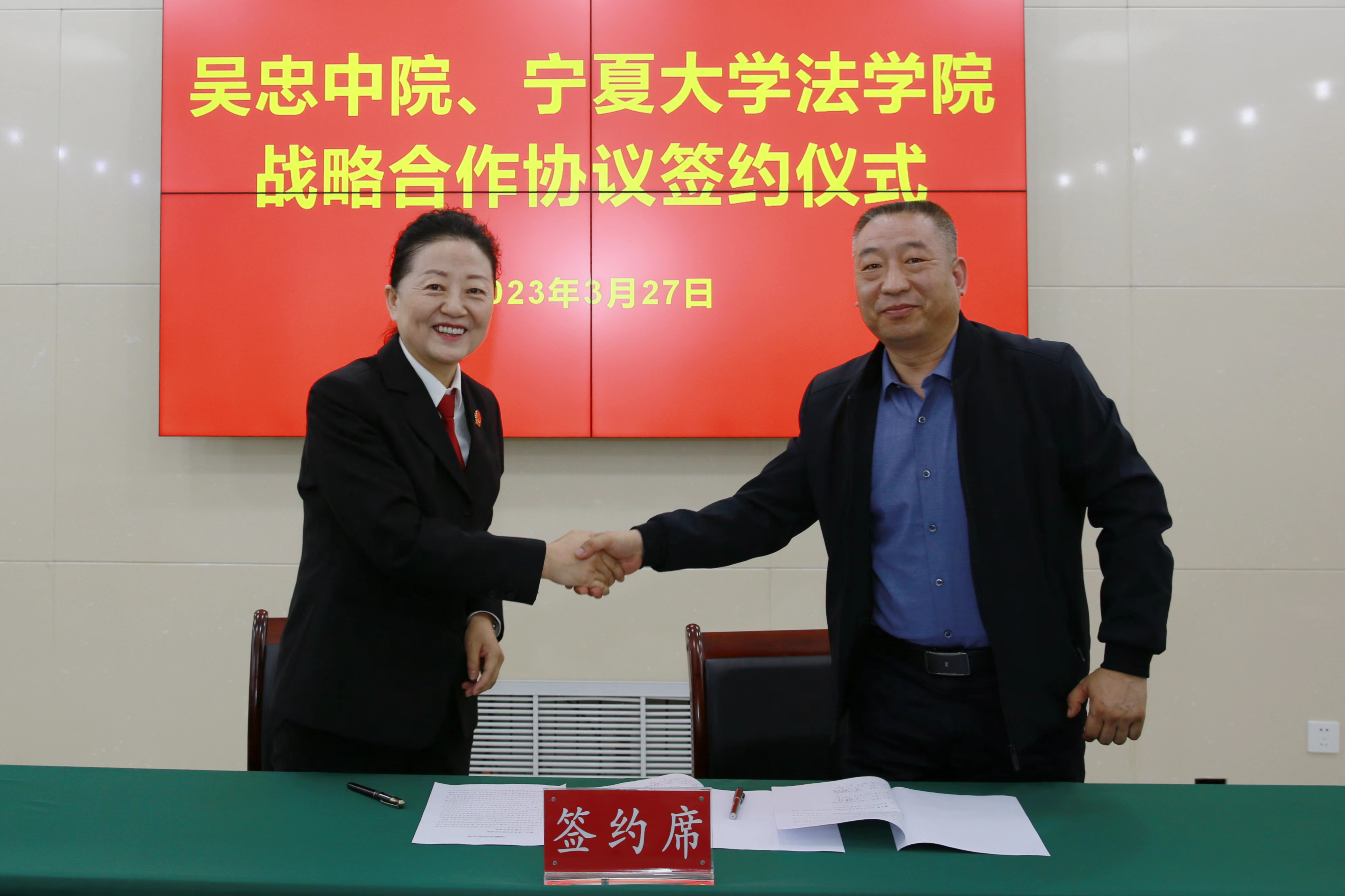 3月27日下午,学院与吴忠市中级人民法院举行交流合作签约仪式,双方就纵深推进高校和地方法院战略合作达成共识。