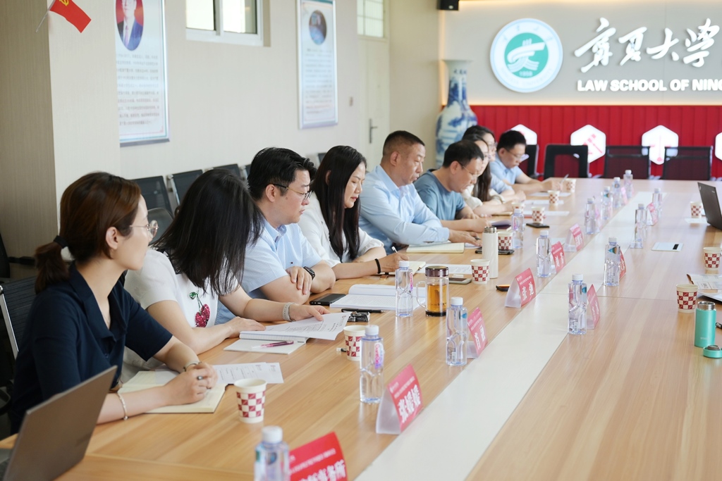 院长吕耀军教授、副院长刘振宇副教授、刘芳教授、学位点工作负责人张弛老师、张涛老师、肖融老师、王一璠老师、庞冬梅老师、张媛媛老师参加研讨会,同时学院产学研共建基地宁人律师事务所律师代表一同参加研讨。会议由学位点工作负责人张弛老师主持。