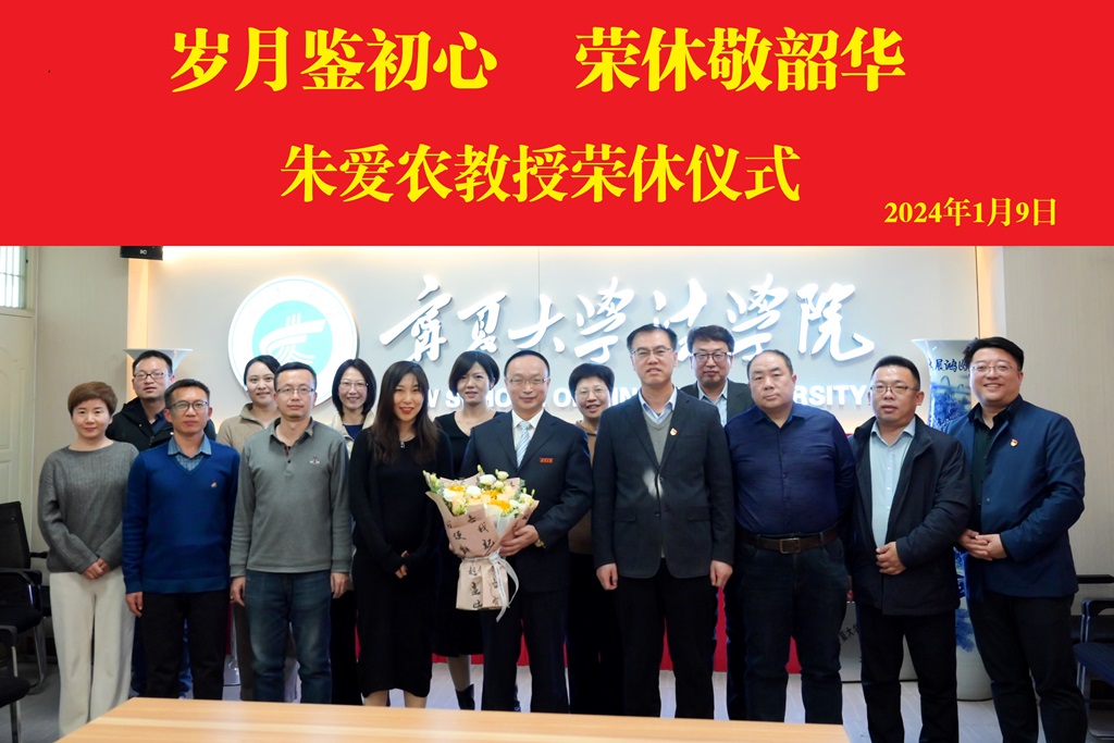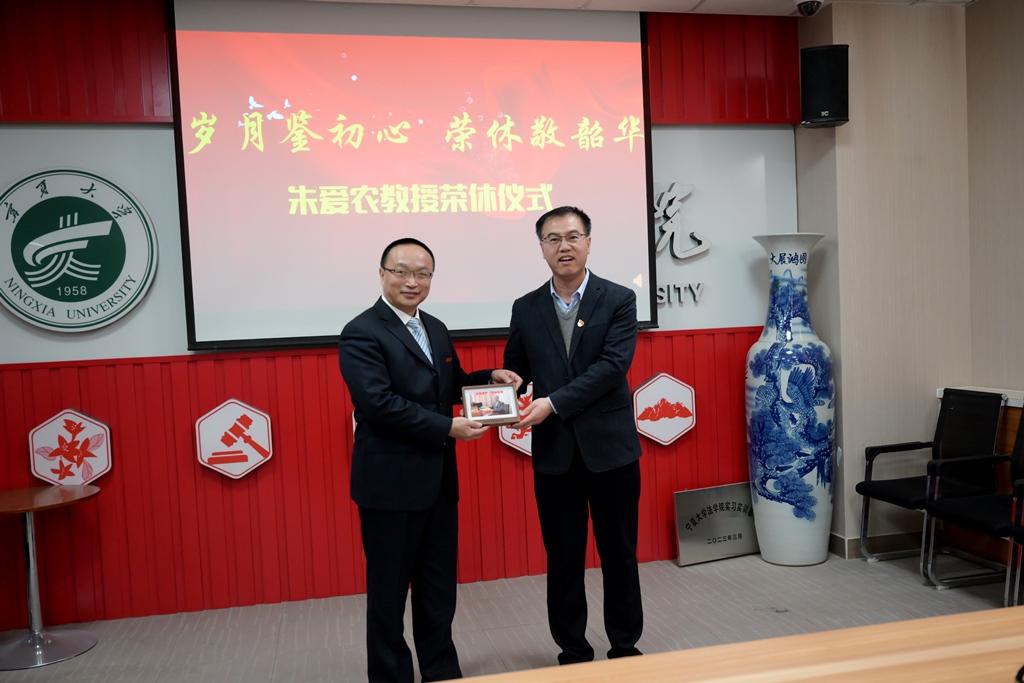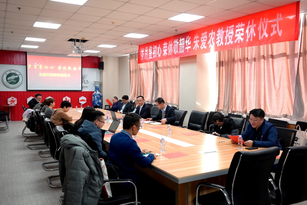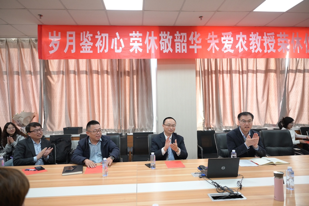发展作出的努力和奉献,希望朱老师今后“退而不休”,继续为学院的发展给予支持,并对朱爱农教授退休以后的生活致以美好的祝福。
