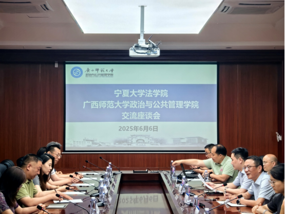 院长吕耀军教授带队抵达广西师范大学。在育才校区国教中心2号楼211会议室,由政治与公共管理学院院长周超教授主持,双方围绕学科建设与党建创新主题展开研讨。会议伊始,吕耀军院长介绍了参会成员与考察目的,重点展示了学院发展与学科建设的创新举措。会上,吕耀军表示,此次调研重点学习广西师范大学的“双一流”建设路径与成效、MPA项目建设理念与运行机制、课程设计与人才培养方案等。周超则介绍了广西师范大学政治与公共管理学院的相关情况。随后,广西师范大学政治与公共管理学院何乃柱副教授介绍了社会学与社会工作系“双带头人”教工党支部书记工作室建设情况。自由交流阶段,双方围绕调研议题展开深度探讨,并且热烈讨论了虚拟仿真实验课程与平台建设、AI辅助教学等议题。会议尾声,双方就后续在学科交流、科研合作、师生互访等方面达成初步意向。