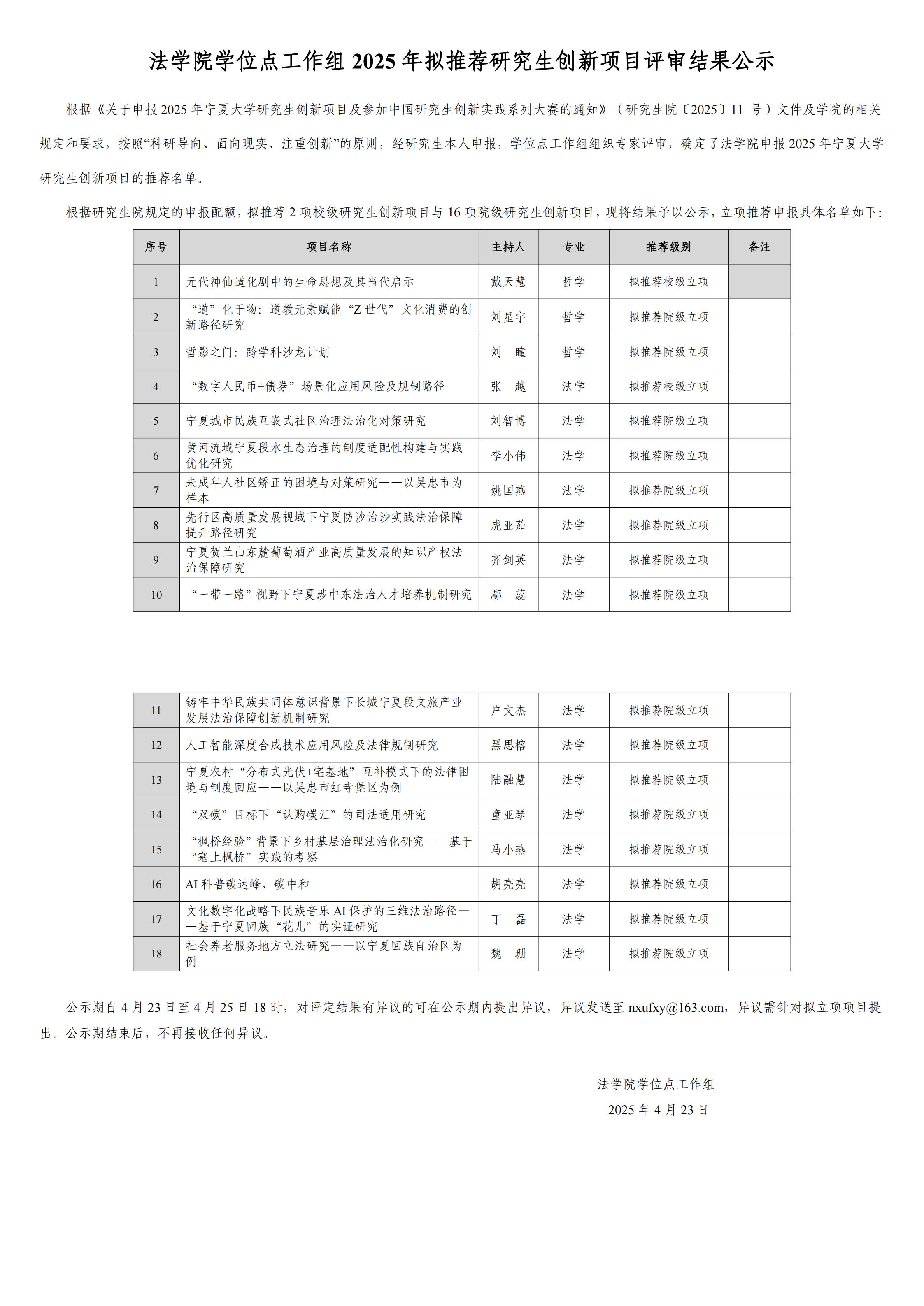 漫画18 学位点工作组2025年拟推荐研究生创新项目评审结果公示