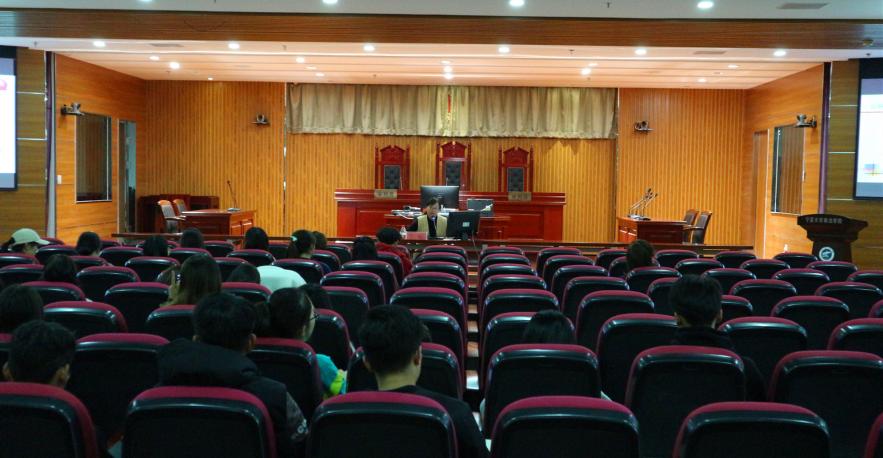 辅导员丁颖老师在模拟法庭为入党积极分子作了“不忘初心、牢记使命,争做合格好党员”专题讲座。