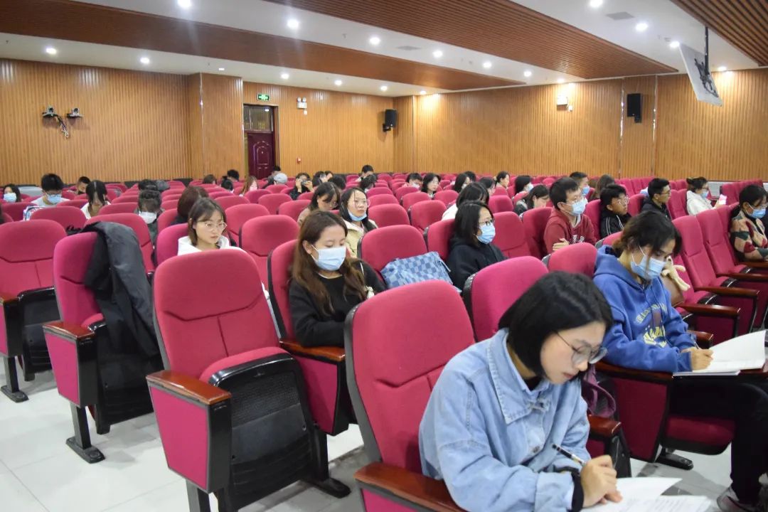 于文荟楼模拟法庭举行《习近平的七年知青岁月》读书分享会,学院党委书记潘瑞主讲,第四十期入党积极分子、第十四期发展对象培训班学员参加。