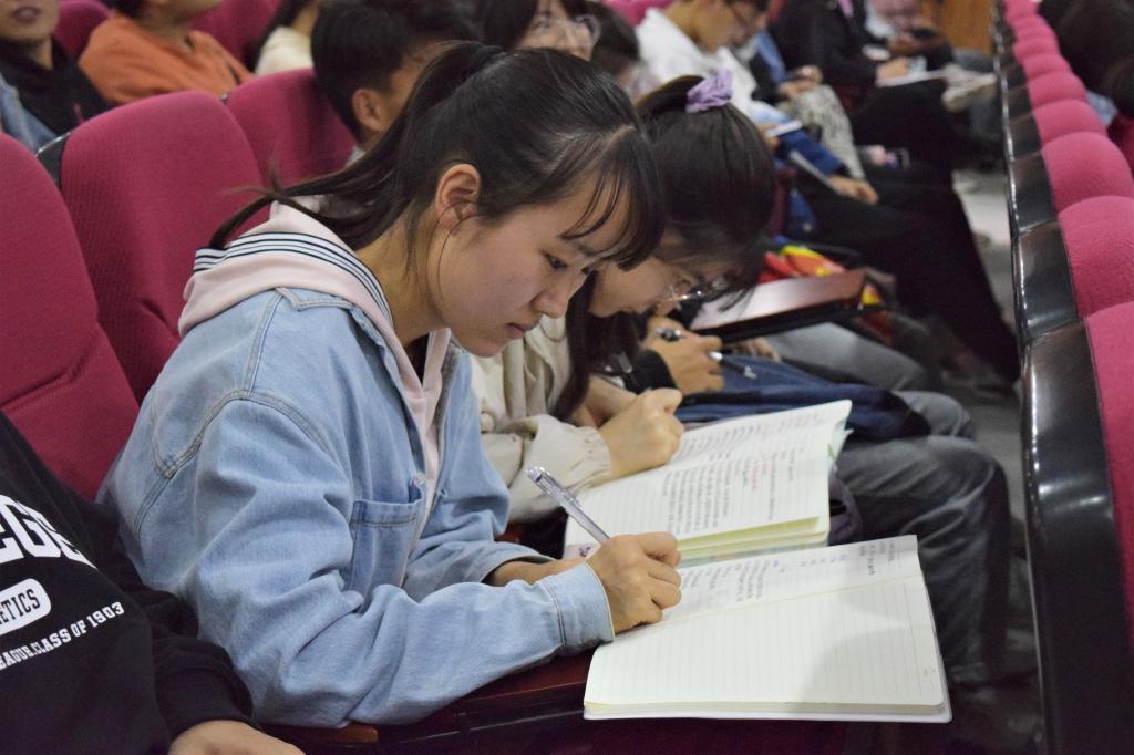 4月28日晚,漫画18 院长吕耀军在文荟楼模拟法庭作“学习马克思主义五观,增强五个认同,维护民族团结”主题讲座,漫画18 和食品与葡萄酒学院党员发展对象、入党积极分子及团学骨干到场聆听。