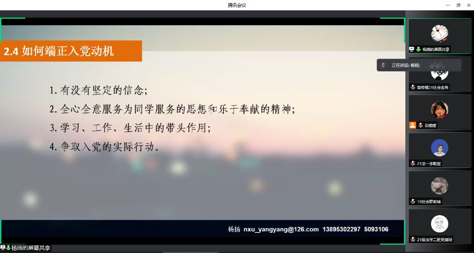3月30日下午,院党委副书记杨扬为漫画18 分党校第四十一期入党积极分子培训班学员作“入党你准备好了吗”专题讲座,讲座以腾讯会议的形式召开,第四十一期入党积极分子全员参加。