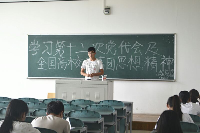 此次团日活动以“学习第十二次党代会及全国高校共青团思想政治工作会议精神”为主题,结合各专业特色开展讨论,各班团日活动形式多样,内容充实,各有千秋。法学班首先由团支书向同学们介绍第十二次党代会及全国高校共青团思想政治工作会议精神的相关内容,在认真聆听了共青团团歌后,班内同学分组讨论、交流自身对第十二次党代会及全国高校共青团思想政治工作会议精神的理解和感悟。思政专业同学在对本次会议精神的主要内容结合专业知识展开细致分析的基础上,进行认识上的互通互动。行政管理专业广大团员对于共青团在大学生中的影响和作用开展了自由讨论,由此对团员身份的责任意识更加深刻。社会学专业同学在团支书的理论引领下对“立德树人”的含义、功能和作用的认识有了更新,并达成了争当“六有大学生”的思想共识。此次团日活动的学习方式多样,学习内容丰富,学习意义重大,各专业同学积极响应理论学习,认真思考,踊跃发言,学习效果颇佳。