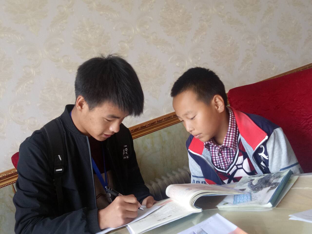清早,天灰蒙蒙的,寒风凛凛。虽路途遥远,同学们却依然满怀热情,在车上积极讨论这次活动的具体开展计划。到达目的地后,大家根据自己所负责的扶助对象进行分工。为争取国家帮助,同学们积极采集孩子们的基本信息,帮助孩子的爷爷奶奶们化解顾虑。“社工之家”的志愿者们深入了解了孩子们的受教育情况,为他们辅导作业,增强了同学们积极融入社会,服务社会的热情。最后,志愿者们为孩子们普及安全知识,悉心针对防骗自救、远离火炉、下雪天在路上禁止打闹等进行温馨提示。