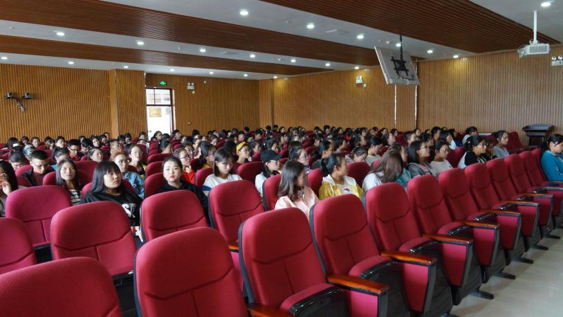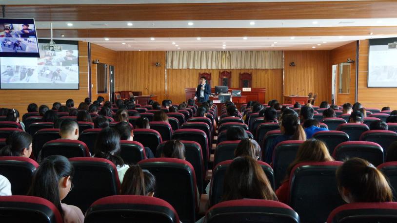 党委副书记崔明堂为大一新生针对国家资助政策进行宣讲。