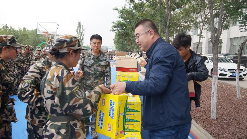 党委书记潘瑞、院长任军、副书记崔明堂、学生工作办公室主任苏军峰在贺兰山校区文荟楼后,代表学院师生慰问军训新生,并带来了慰问品。