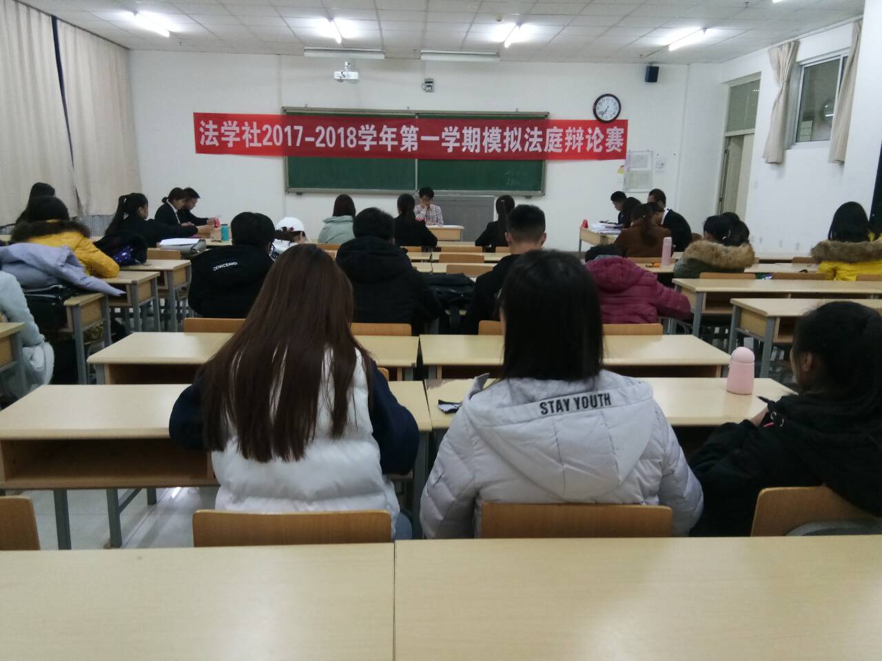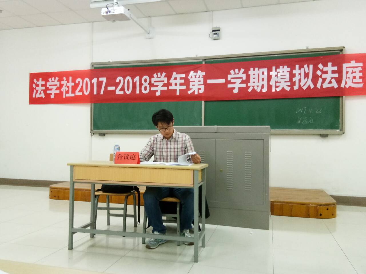 法学社承办的“模拟法庭辩论赛”在贺兰山校区文荟楼401教室成功举办。法律系马浩丹老师受邀担任合议庭评审员,2017级法学专业全体同学到场观摩学习。