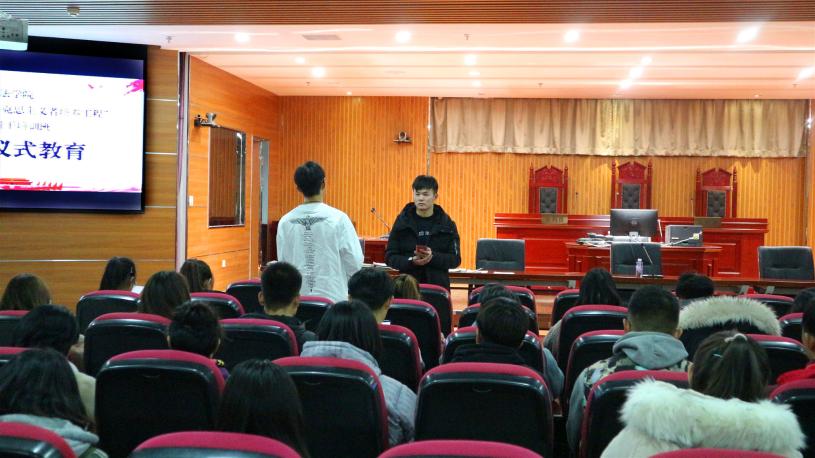 于模拟法庭举行第十一期“青年马克思主义者培养工程”团学骨干培训班举办入团仪式教育及笔记展评活动,全体青马班学员参加。