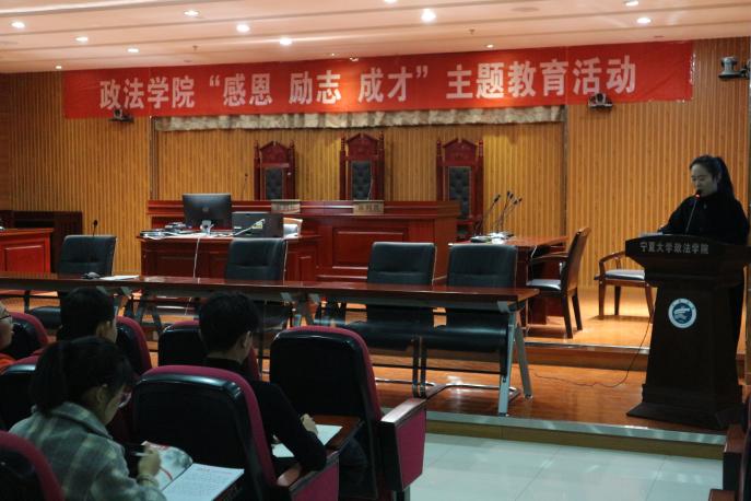 在模拟法庭举办“感恩、励志、成才”主题教育活动。