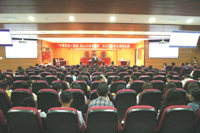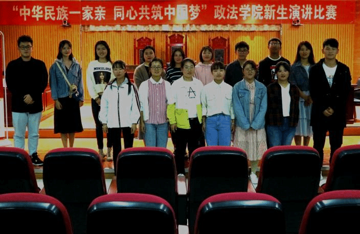 举办“中华民族一家亲,同心共筑中国梦”新生主题演讲比赛。2019级全体新生到场观赛。