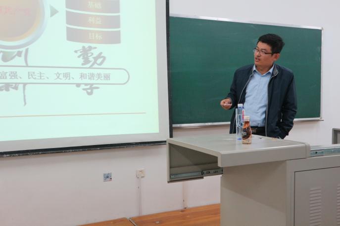 报告会上,张老师首先带领同学们回顾了中国共产党的发展历程。指出经历了大革命时期、土地革命时期、抗战时期、民主革命时期及新民主主义革命时期的风雨征程,党一步步成长成熟起来。随后,他带领大家重温了中国共产党在建设新中国过程中的故事,张老师以生动的语言再现了中国共产党不忘初心的品质。毛泽东思想、邓小平理论、“三个代表”重要思想、科学发展观及习近平新时代中国特色社会主义思想,都是中国共产党集体智慧的结晶。报告会中师生聚焦党的十九大,一同交流学习了党的最新科学理念。最后,张航老师与同学们畅谈人生,他希望同学们脚踏实地,努力成为一个合格的党员,为建设美丽中国、实现伟大中国梦贡献自己的力量。