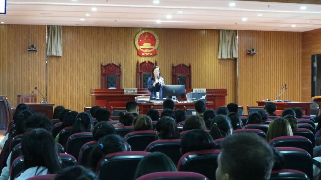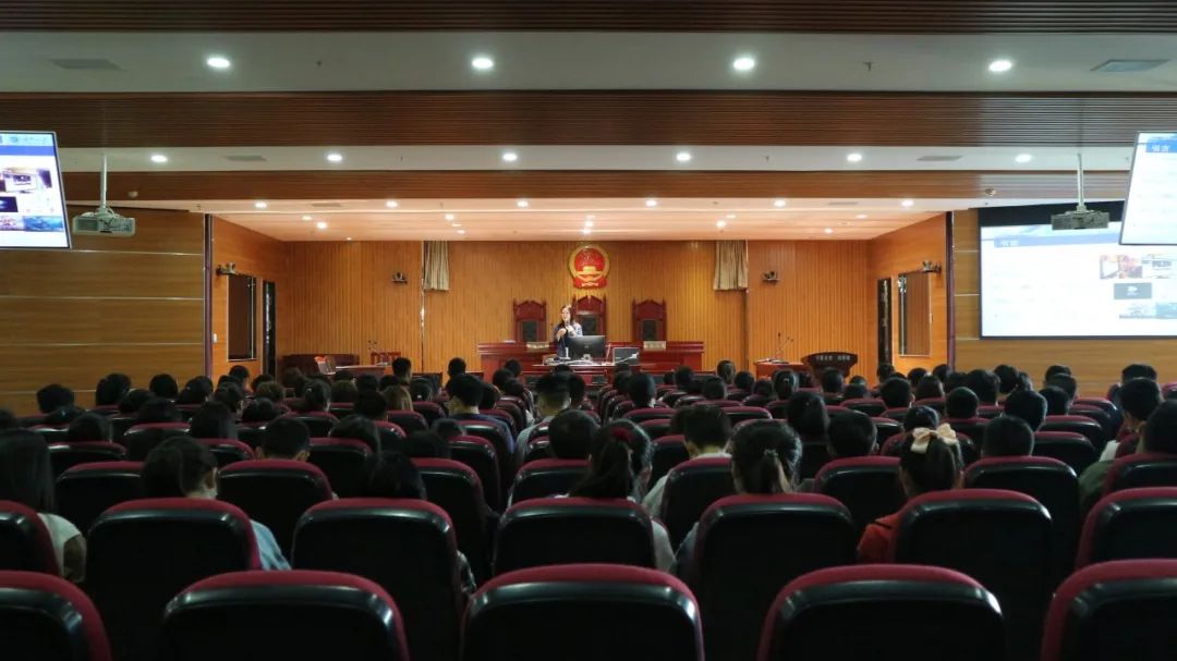 于模拟法庭组织开展新生网络文明守纪和安全教育讲座。学院党委副书记杨扬出席讲座,2020级全体新生参加讲座,由漫画18