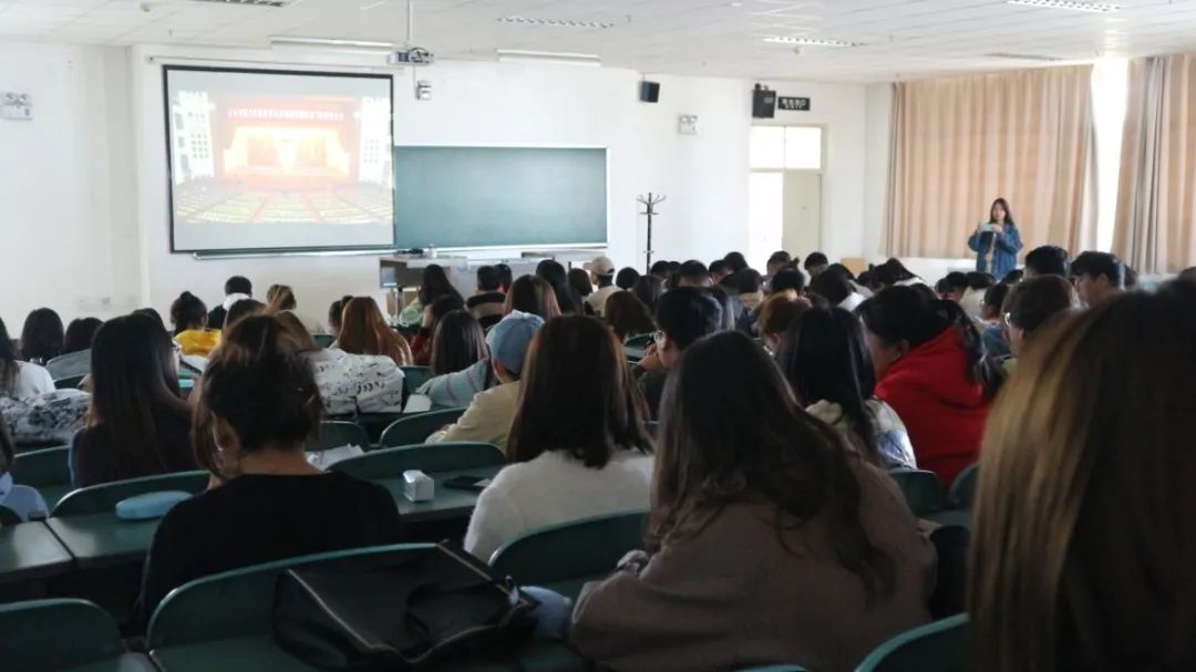 在文荟楼342教室组织2020级法学一班、2019级法学一班、2018级行政管理班和社会学班的同学观看“纪念人民志愿军抗美援朝出国作战七十周年大会”的直播。