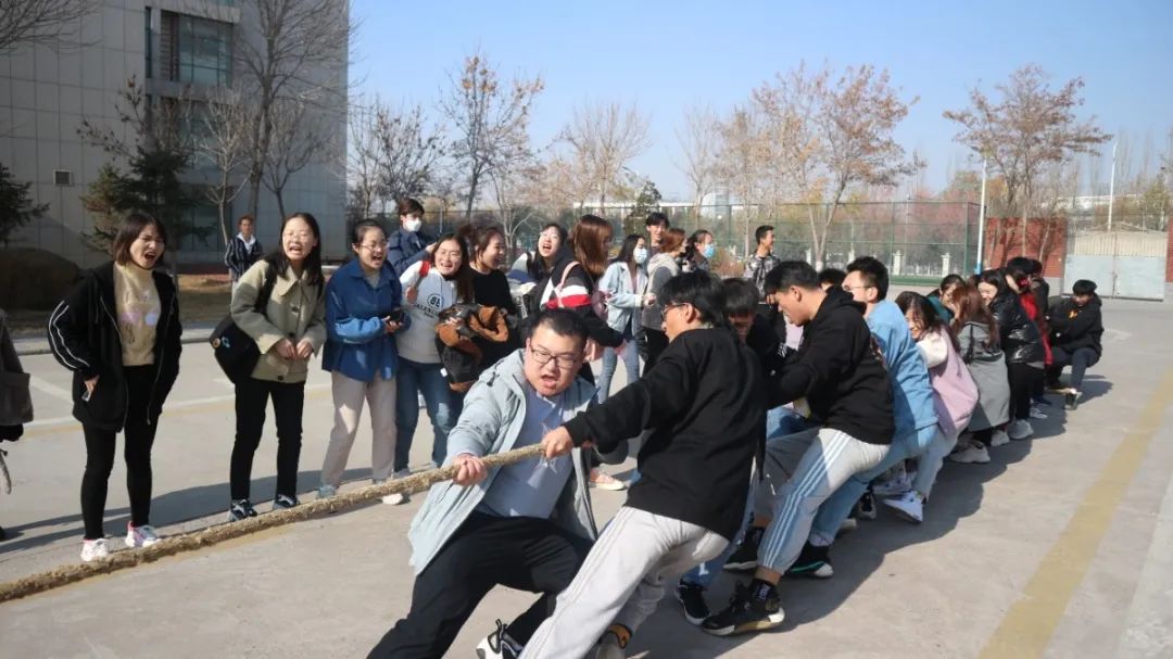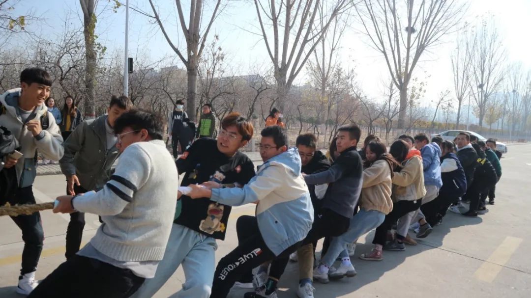 11月9日,金秋携着清风与美景走入校园。一场凝聚着团结与拼搏的拔河决赛在文荟楼后上演!