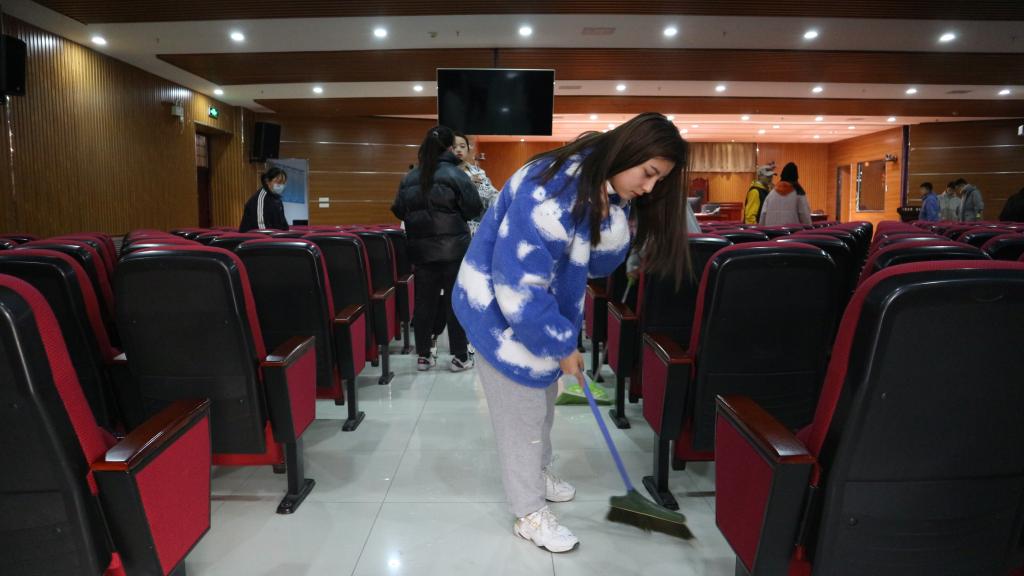 组织青马班学员于文荟楼2楼模拟法庭和204教室开展志愿清扫活动。