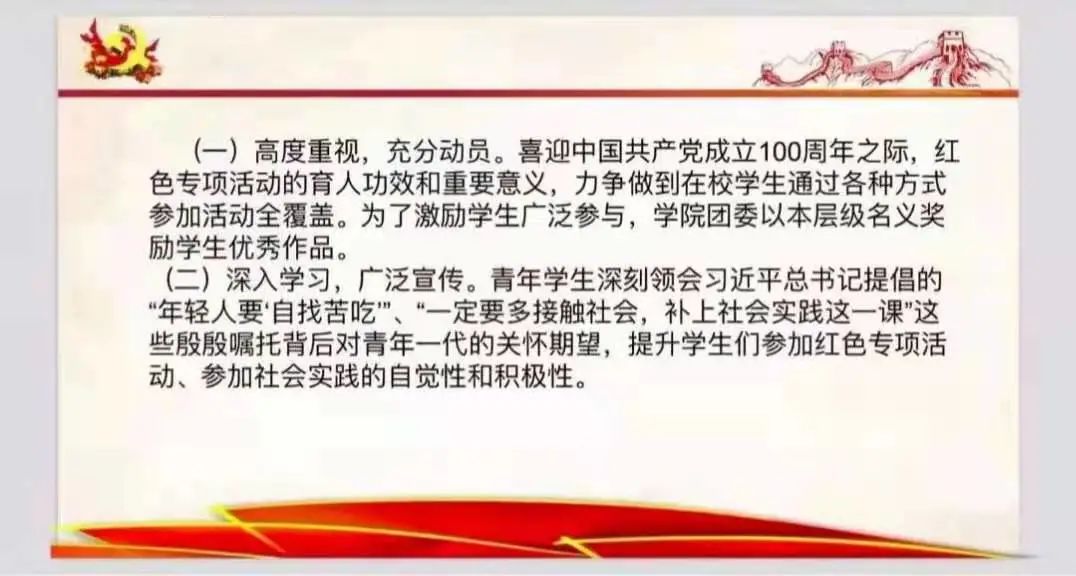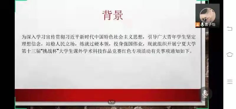 第十三届“挑战杯”大学生课外学术科技作品竞赛暨红色专项实践活动,学院团委于2021年1月26日下午组织各班团支部开展“触发科技灵感,展现红色生命”主题团日活动。