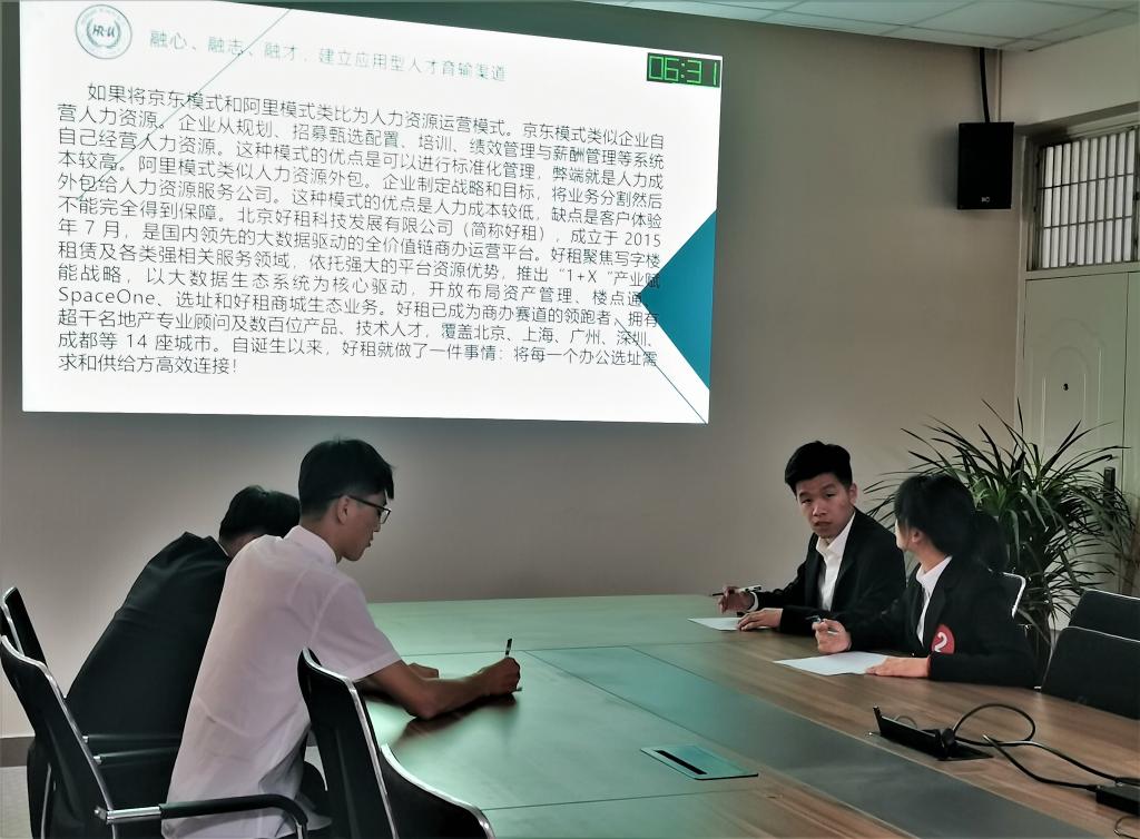 本次大赛设无领导小组讨论、实务设计、案例分析、职场实战四个常规比赛项目。比赛过程中,选手们思维敏捷、条理清晰,将理论与实践相结合,沉着冷静的阐明了应对思路,迅速提出了有效的解决方案。他们的精彩表现给诸位评委留下了深刻的印象。比赛结束后,评委老师对选手们的表现一一进行点评,他们从人力资源管理的专业角度深入探讨、分析学生比赛过程中出现的问题,并给予细致指导。