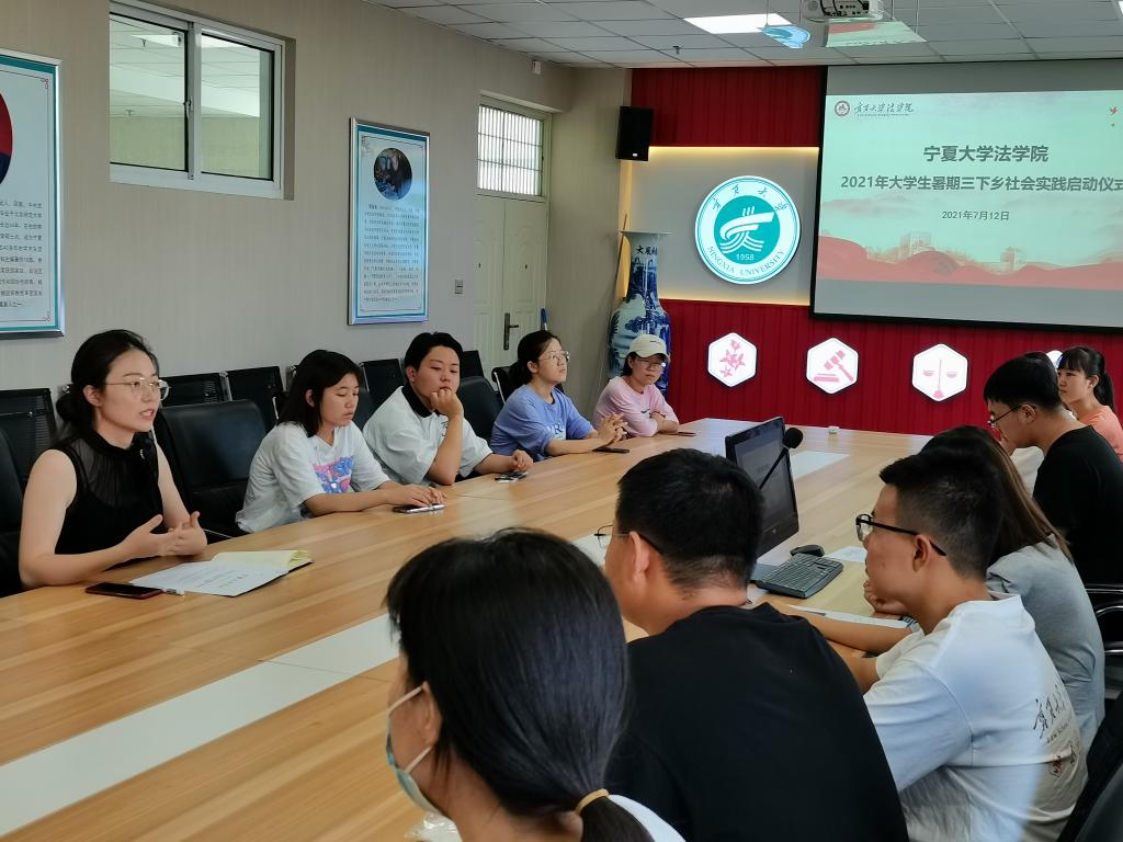2021年大学生暑期社会实践活动。学院党委副书记杨扬、团委书记王嘉豫和各实践团代表参加出征仪式。