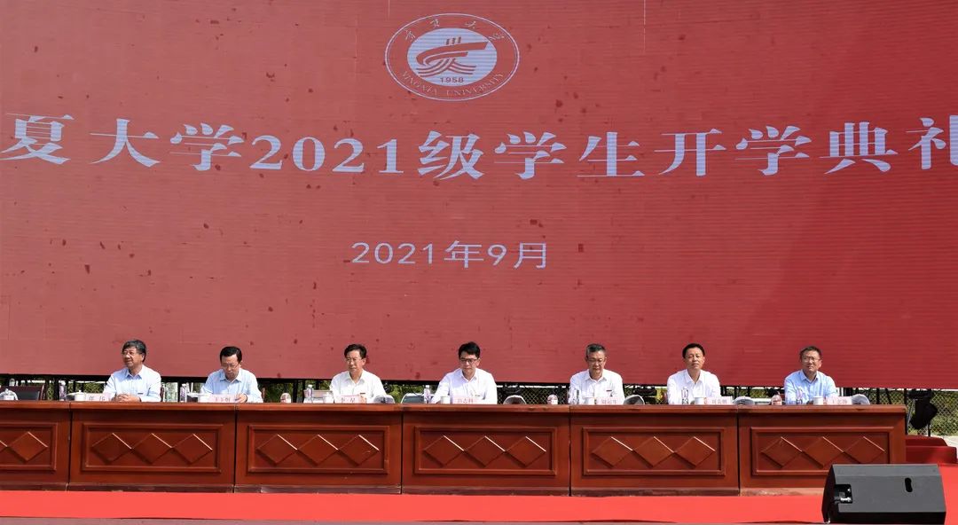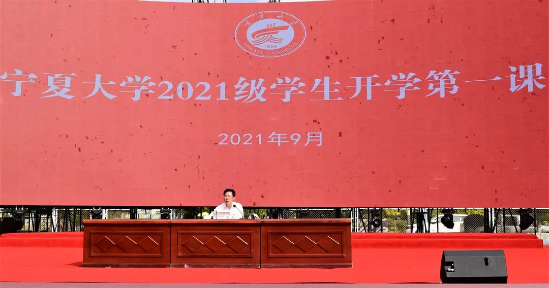 典礼在庄严的国歌声中拉开帷幕,全体新生作入学宣誓。随后,新生代表、在校生代表、校友代表、教师代表分别发言,校长彭志科讲话。他希望学子们要在国家发展的大格局中磨砺理想信念的压舱石,要在创新求变的新机遇中定位行稳致远的小坐标,要在求学问道的高境界中练就砥砺前行的真本领。同时,他寄语同学们要学习“不怕困难,不畏风寒;根深叶茂,本固枝荣”的沙枣树精神,扎根宁大、茁壮成长。最后,全体新生集体佩戴校徽,至此,新生开学典礼落下帷幕。