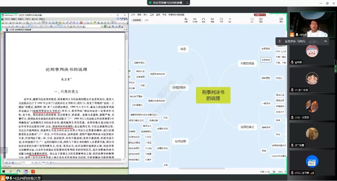 11月19日下午,为进一步提升法学专业本科生的理论与实践能力,由法律系教师马浩丹主持的“刑事判决说理——论文与判决赏析”主题研习活动以腾讯会议的形式在线上开展。学院2020级、2021级部分学生参加。