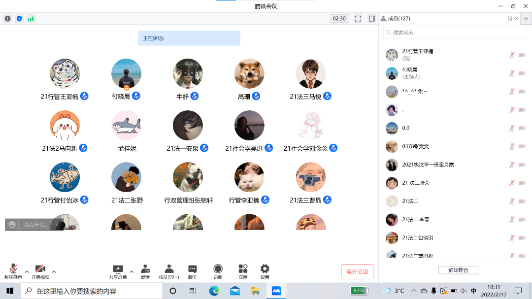 为全面落实疫情防控常态化工作,切实抓好2022年春季学期开学复课各项工作,保障师生安全返校、顺利开学,2月17日晚,学院分别组织召开了全日制本科生、研究生年级大会暨返校工作部署会。会议由院学生工作办公室主任王嘉豫、辅导员付晓晨分别主持,全体全日制本科生、研究生线上参会。