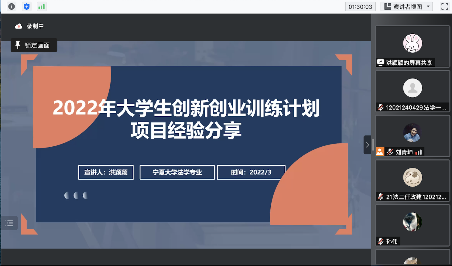 大学生创新创业训练计划项目管理办法》,提高学生创新创业精神和实践能力,充分调动全体师生参与2022年创新创业大赛的积极性和主动性。3月21日晚,学院组织开展了大学生创新创业项目政策解读与辅导培训。本次培训由学院教学办公室武玲娥、孙伟主讲,学生刘青坤主持。