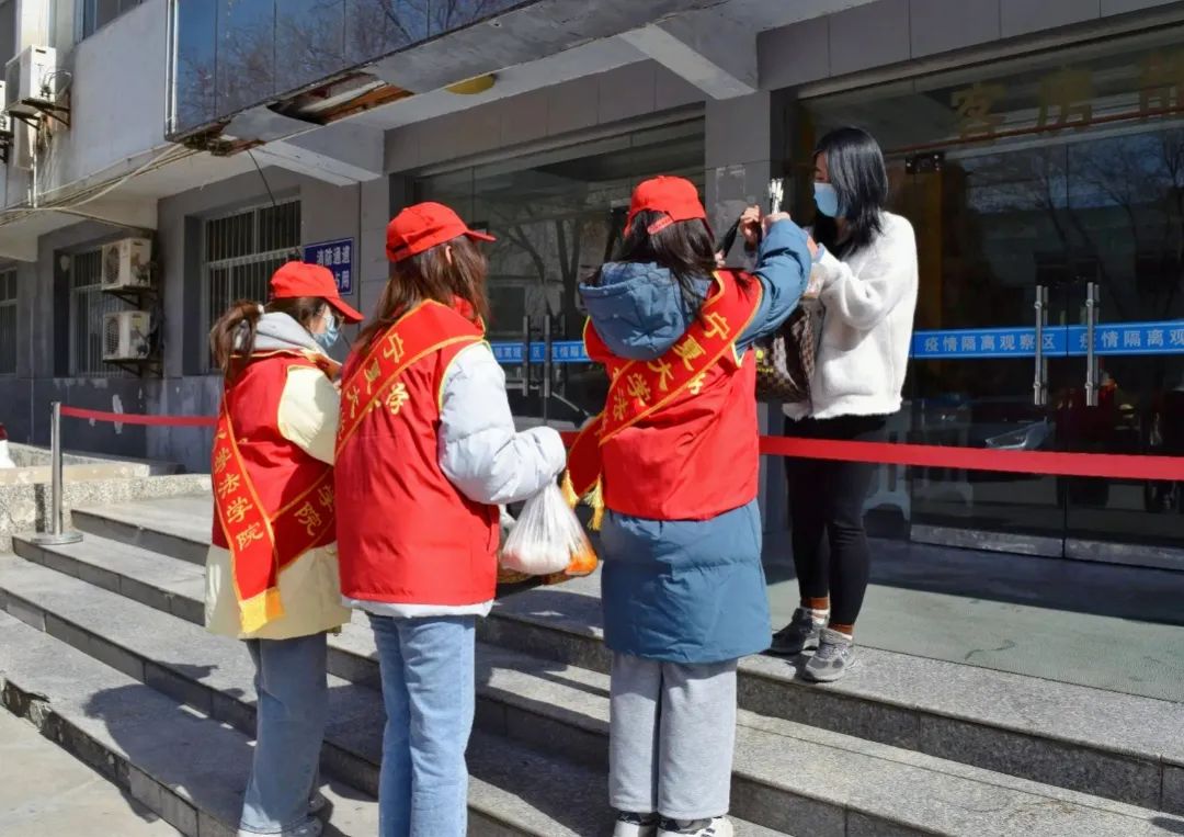 分会组织了怀远校区群贤楼第一周的送餐志愿活动,一位位志愿者身穿红马甲,将一份份饭菜定时定点地送至群贤楼,有助于保障被隔离同学的生活需求,配合学校防疫工作的顺利进行。