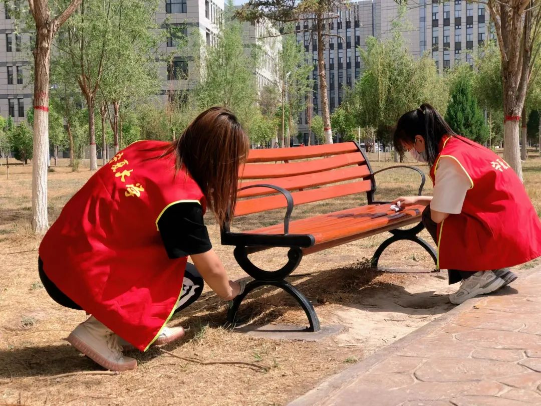 开展我为同学办实事系列活动之校园石椅清扫活动,活动在“到梦空间”进行发布,主要负责对贺兰山校区的石椅进行清扫。