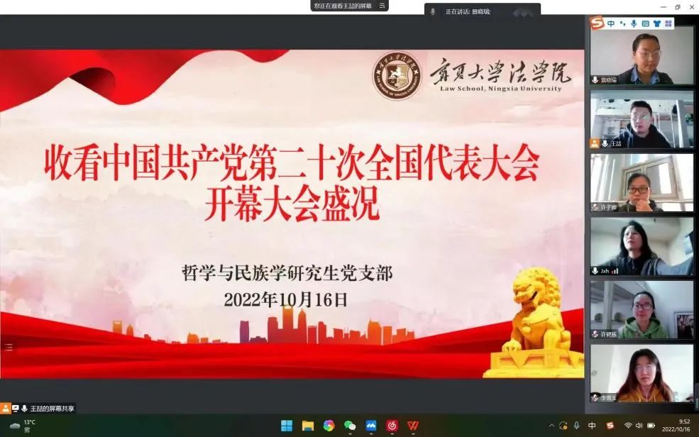 哲学与民族学研究生党支部全体党员在线收看开幕大会盛况。
