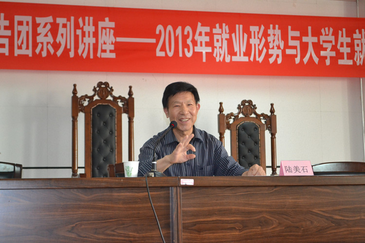关心下一代工作委员会“五老”报告团团长陆美石主讲,陆老师指出今年的就业形势依然十分严峻,他从供需矛盾、结构冲突等方面详尽解释了就业形势严峻的原因;从用人单位、大学生和学校三个方面全方位地阐述了当今大学生就业难的根源;陆老师还从漫画18