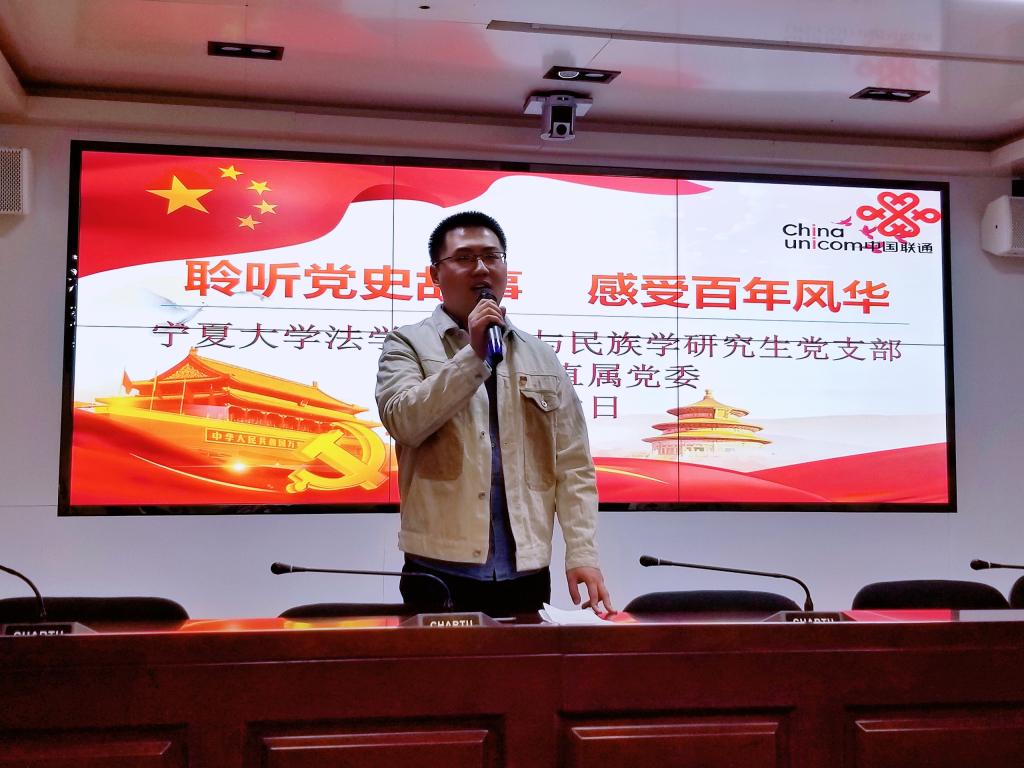 4月2日下午,在中国联通宁夏分公司,漫画18 哲学与民族学研究生党支部联合宁夏联通直属党委共同举办了“聆听党史故事 · 感受百年风华”主题党日活动。漫画18 副院长靳永雄、哲学与民族学研究生党支部书记江晓红,宁夏联通党群工作部主任吕晓明、宁夏联通党群工作部党务专干王英,支部全体党员及入党积极分子参加了主题党日活动,活动由党支部宣传委员王燕子主持。
